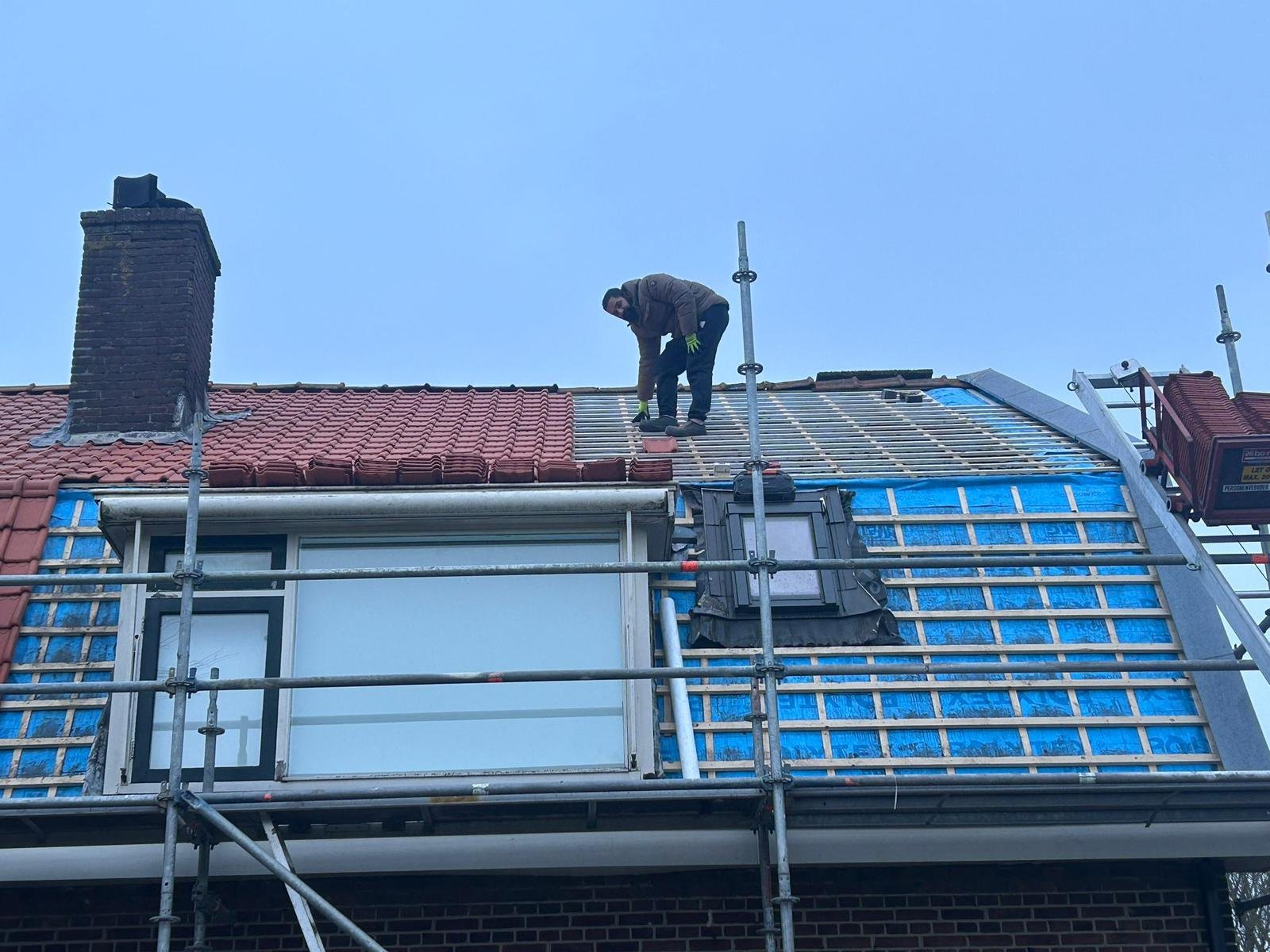 Bekijk Dienst →Vakkundige installatie van nieuwe dakbedekking met hoogwaardige materialen.